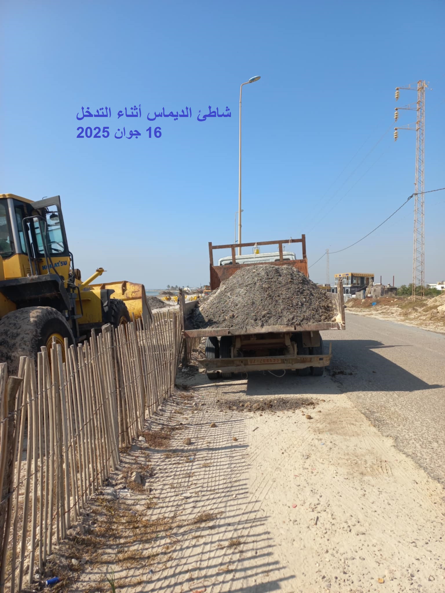 في إطار مواصلة حملة النظافة المشتركة بشاطئ الديماس، تولت البلدية يوم الإثنين 16 جوان 2025 بالتعاون مع الفرع الجهوي لوكالة حماية وتهيئة الشريط الساحلي بالمنستير ومشاركة بلديات صيادة وقصرهلال وطبلبة والشراحيل وعميرة الحجاج وعميرة التوازرة وشركتين خاصتين بنقل الكميات المتبقية من الطحالب البحرية.